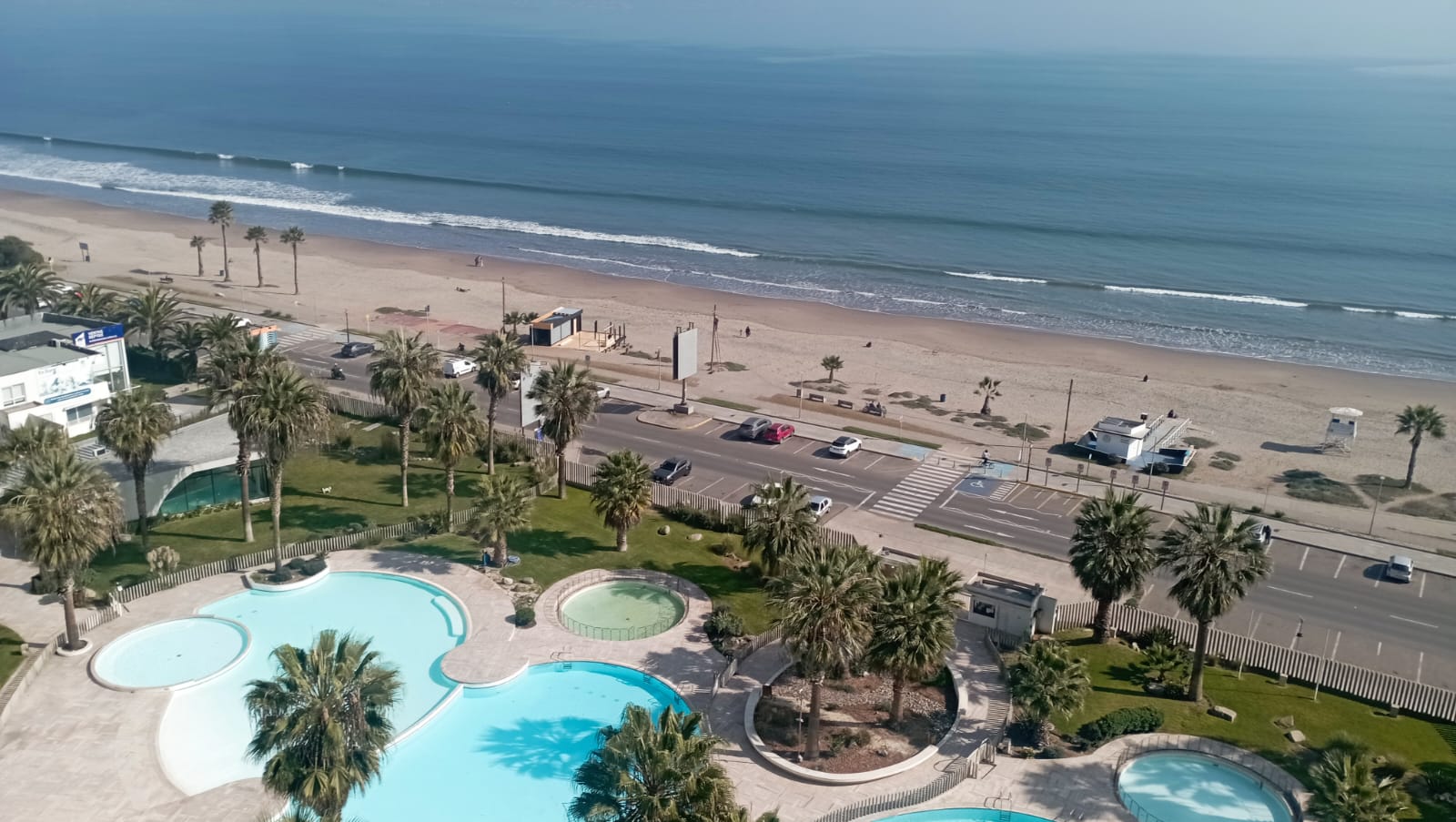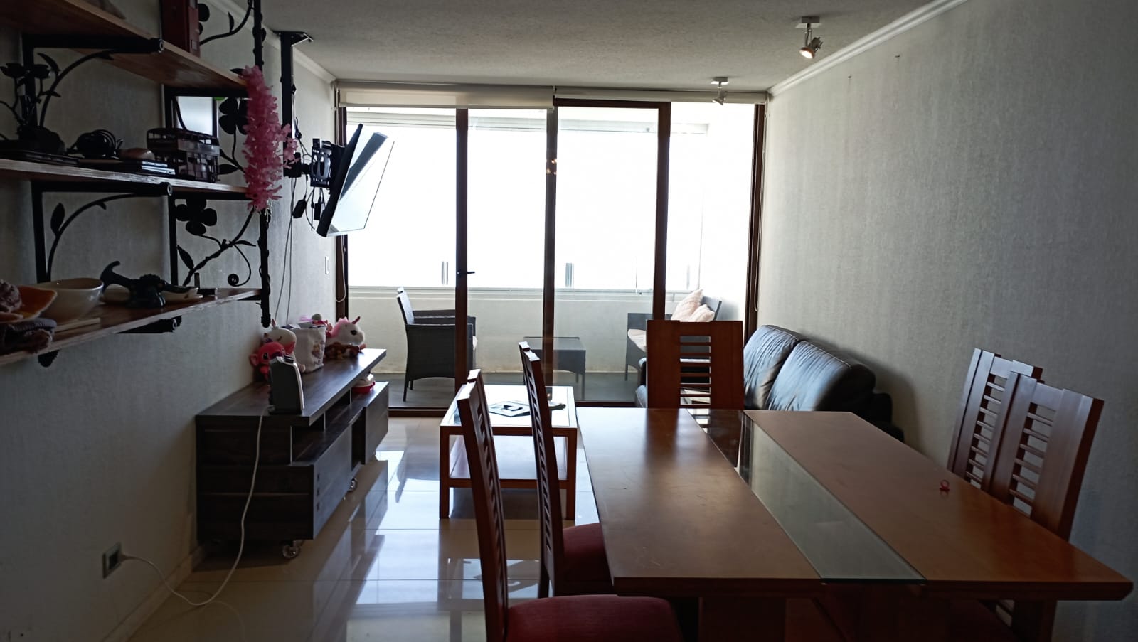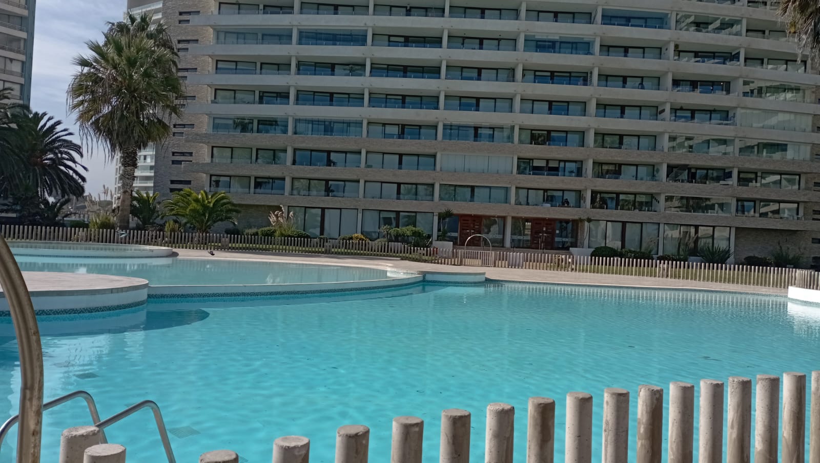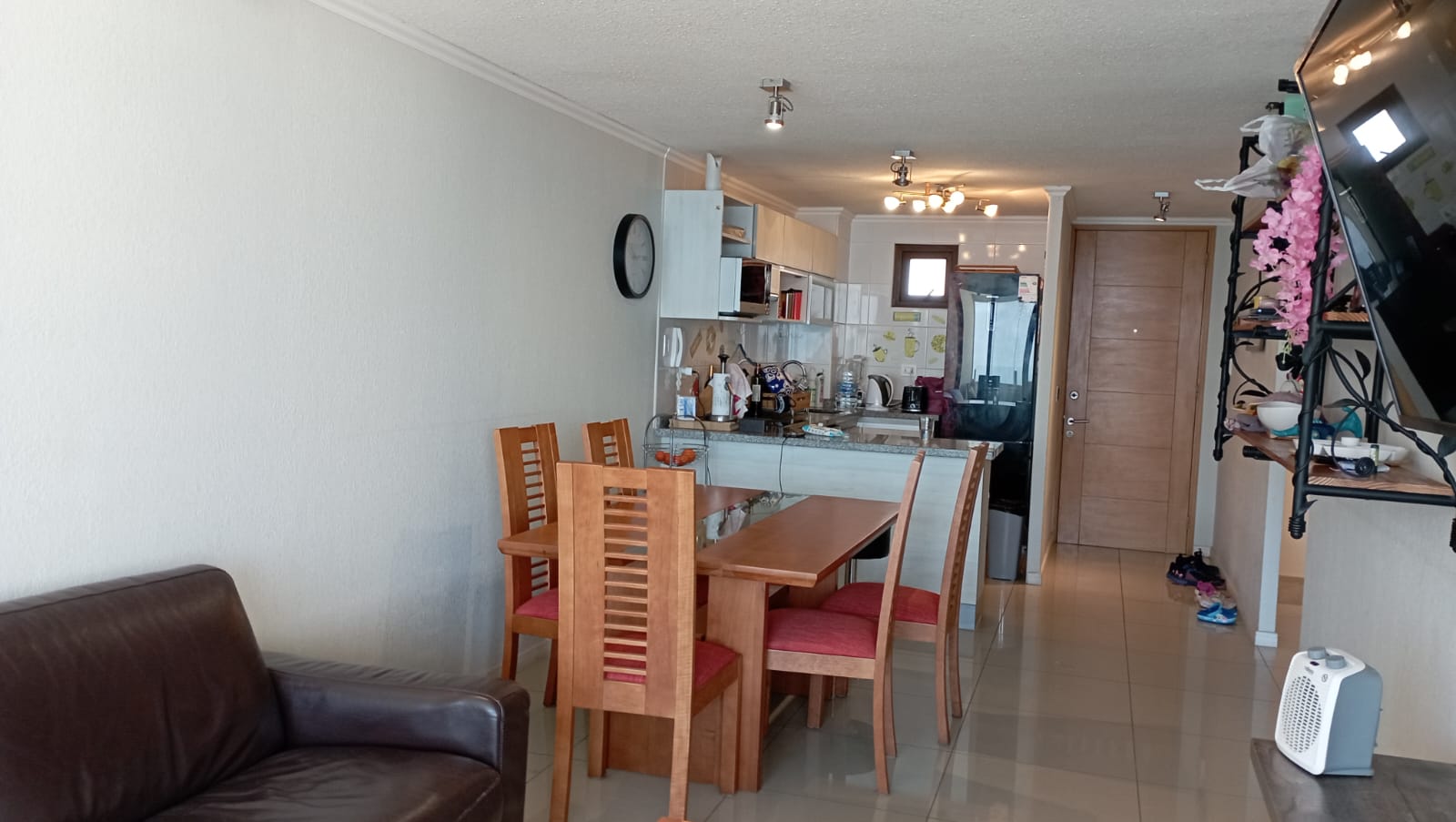 Arriendo Departamento Jardin del mar Coquimbo. Se ofrece en arriendo Departamento muy bien ubicado en Condominio Jardin del Mar, piso 16, cerca del Casino Enjoy, con acceso directo a la playa y vistas panorámicas al océano. La propiedad cuenta con una superficie total de 80 m² y una superficie útil de 90 m², distribuidos en dos dormitorios y dos baños, principal en suite. El espacio principal integra living-comedor con ventanales que permiten apreciar el entorno costero y salida a una terraza cerrada con vista al mar. La cocina está equipada y se conecta de manera funcional con el área social. El departamento incluye estacionamiento y una bodega y permite la tenencia de mascotas. El edificio ofrece áreas comunes como piscina al aire libre y jardines, brindando un entorno ideal para disfrutar de la vida junto al mar. Gastos comunes incluidos en el canon de arriendo.